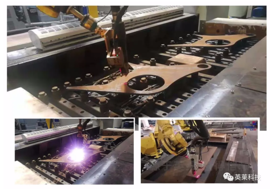 ● 自動(dòng)化切割,由機(jī)器人帶動(dòng)切割設(shè)備,配套英萊激光視覺焊縫跟蹤系統(tǒng),可實(shí)時(shí)測定切割的路徑,優(yōu)化切割過程;